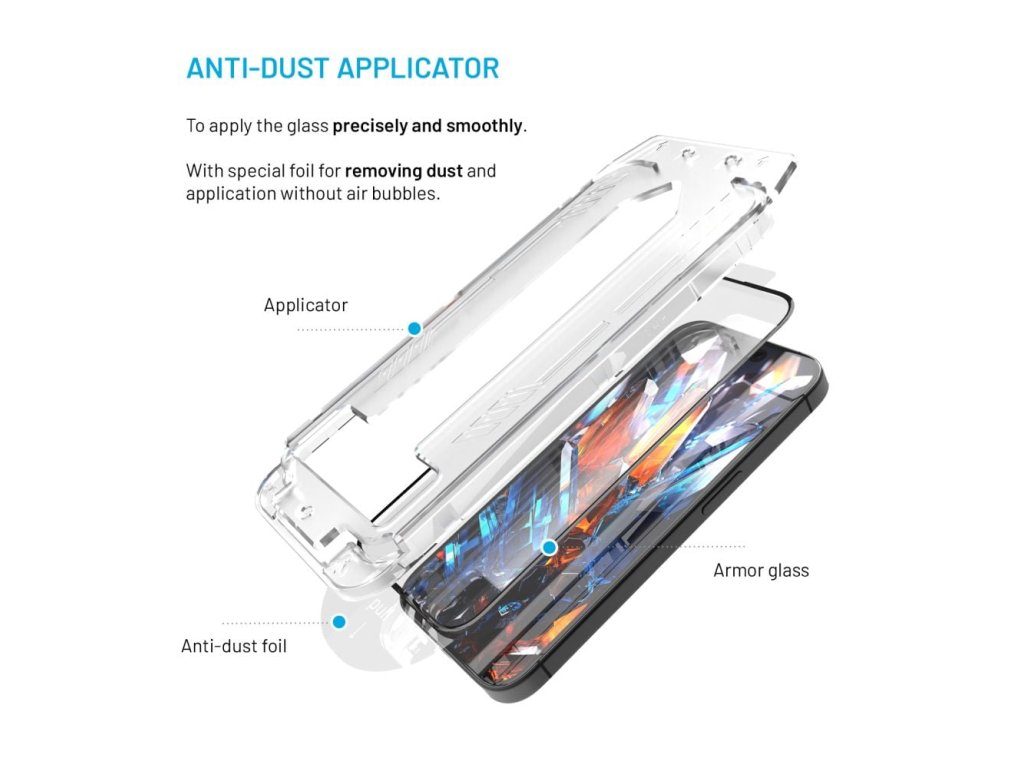 Ultraodolné tvrdené sklo FIXED Armor s aplikátorom proti prachu a vrstvou AR pre Apple iPhone 17 Pro, čierne
