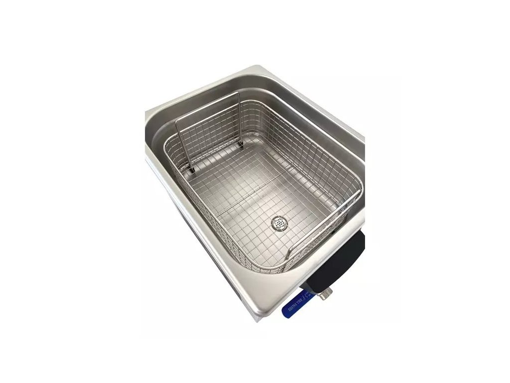 Ultrazvuková čistička Geti GUC 10B s ohrevom vyčistí všetko od povrchových nečistôt a to len pomocou vody a vibrácií, ktoré vytvárajú ultrazvuk. Ultrazvukové čistenie je založené na kavitačnom efekte spôsobenom vysokofrekvenčným vibračným signálom ultrazvukových vĺn v tekutine. Vytvárajú sa mikroskopické bubliny, ktoré prudko implodujú a spôsobujú kavitáciu, ktorá spôsobuje intenzívne čistenie na povrchu čisteného predmetu. Bubliny sú dostatočne malé, aby prenikli mikroskopickými štrbinami a tým dôkladne a dôsledne čistili predmet. Používa sa na čistenie širokej škály nástrojov a mechanických súčastí. Parametre produktu: - digitálne zobrazenie teploty a času - celokovové prevedenie - keramické výhrevné telesá pre lepší ohrev - lisovaná nádrž bez zváracej medzery pre lepšiu vodotesnosť - chladiaci ventilátor - základná doska odolná proti vlhkosti - bočné držadlá pre ľahkú manipuláciu - vypúšťací ventil Technické parametre: - objem nádržky: 10l - pracovný frek °C - výkon ohrevu: 300W - materiál: nehrdzavejúca oceľ SUS304 - rozmer vane: 300x240x150 mm - digitálny časovač: 1-99 min - výkon ultrazvuku: 240W - napájanie: 220-240V AC / 50 Hz - rozmery: 330x27 l Príkon: 540 W Požadované vlastnosti: časovač, displej, s ohrevom Materiál: nerez Pracovný kmitočet: 40 kHz Dĺžka vane: 300 mm Šírka vane: 240 mm Hĺbka vane: 150 mm Dĺžka (mm): 330 mm Šírka (mm): 270 mm Výška (mm)Dodatočné parametre