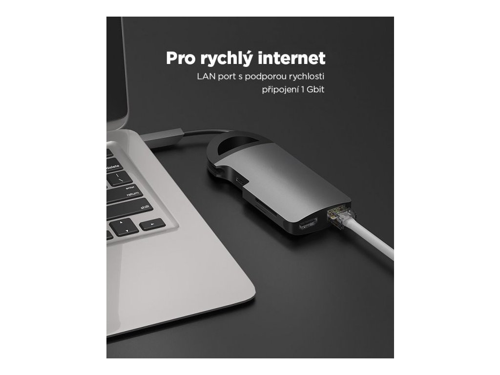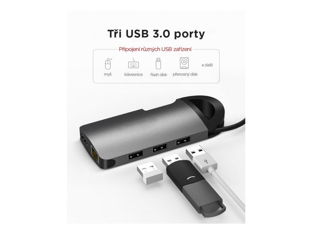 Unikátny dizajn a komfort Multiportový adaptér Umax U-Connect Multiport H8 s podareným dizajnom skvele doplní Váš MacBook, ChromeBook alebo Ultrabook a rozšíri ich možnosti vďaka 8 portom ako sú 4K HDMI, Gigabit Ethernet, 3 x USB 3.0, USB-C (pre nabíjanie), čítačka kariet Micro SD a SD. Umax U-Connect Multiport H8 prináša viac portov a viac pohodlia na zvýšenie produktivity. 4K @ 30Hz HDMI výstup Umax U-Connect Multiport H8 umožňuje pripojiť 4K TV alebo monitor vďaka HDMI portu.s podporou 4K @ 30Hz a prinesie na vašu obrazovku špičkovú kvalitu obrazu. Priamy prístup k pripojeniu Gigabit Ethernet. Umax U-Connect Multiport H8 ponúka okamžité pripojenie k vysokorýchlostným sieťam Gigabit Ethernet, takže si môžete vychutnať prenosovú rýchlosť až 1000 Mbps. Funkcia nabíjania a rýchly prenos dát Udržujte svoje zariadenie nabité vďaka funkcii nabíjania, jednoducho pripojte nabíjací kábel k portu USB-C. Tri porty USB 3.0 dosahujú rýchlosť prenosu dát až 5 Gb/s. Nechýbajú ani čítačky kariet Micro SD a SD. Plug-and-Play design Plug-and-play znamená, že adaptér sa bez problémov pripája k vášmu zariadeniu bez nutnosti inštalácie ovládačov. Umax U-Connect Multiport H8 podporuje MacOS, ChromeOS aj Windows 10. HDMI: max. 4K 30Hz (3840x2160 30Hz) LAN: 1 GBit USB Type-C Power Delivery: max. 60W (20V 3A) 3 x USB 3.0: 5Gbps, 5 OS: Windows 10, macOS, Chrome OS Rozmery: 12,5 cm x 5,5 cm x 1 cm Hmotnosť: 120gDodatočné parametre