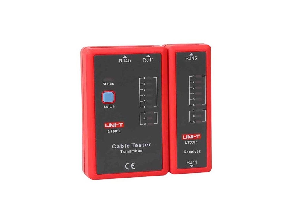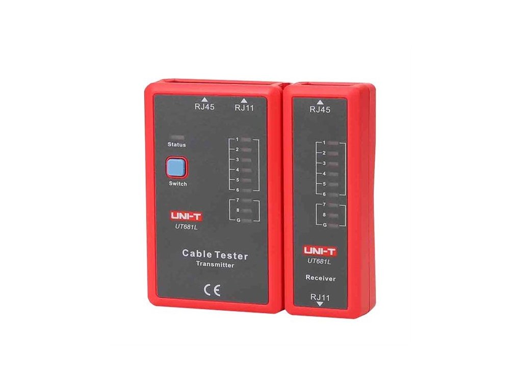 Popis produktu UT681L je určený na testovanie ethernetových káblov (RJ45), telefónnych káblov (RJ11). Dokáže rýchlo odhaliť skraty na kábloch, nesprávne zapojenie a prerušené vedenie. Prístroj dokáže rýchlo otestovať a presne určiť stav každého jednotlivého vodiča v uvedených viacžilových kábloch. Je veľkým pomocníkom pri navrhovaní a výstavbe komunikačných sietí a infraštruktúry. Parametre a vlastnosti výrobku: - test skratu, kríženia a prerušenia obvodu - testovanie tienených a netienených vedení - manuálne vypnutie - automatické vypnutie po 10 minútach nečinnosti - ovládanie jedným tlačidlom - indikácia slabej batérie Technické parametre: - Testovanie RJ45/RJ11 - Režim rýchleho testovania: LED1-LED8, LED_ LED_G - Napájanie: 9V batéria - Teplota skladovania: -10 až 50 ° C - Prevádzková teplota: 0-40 ° C - Prevádzková vlhkosť: 20-80 % relatívnej vlhkosti - Skladovacia vlhkosť: 10-90 % RHDodatočné parametre