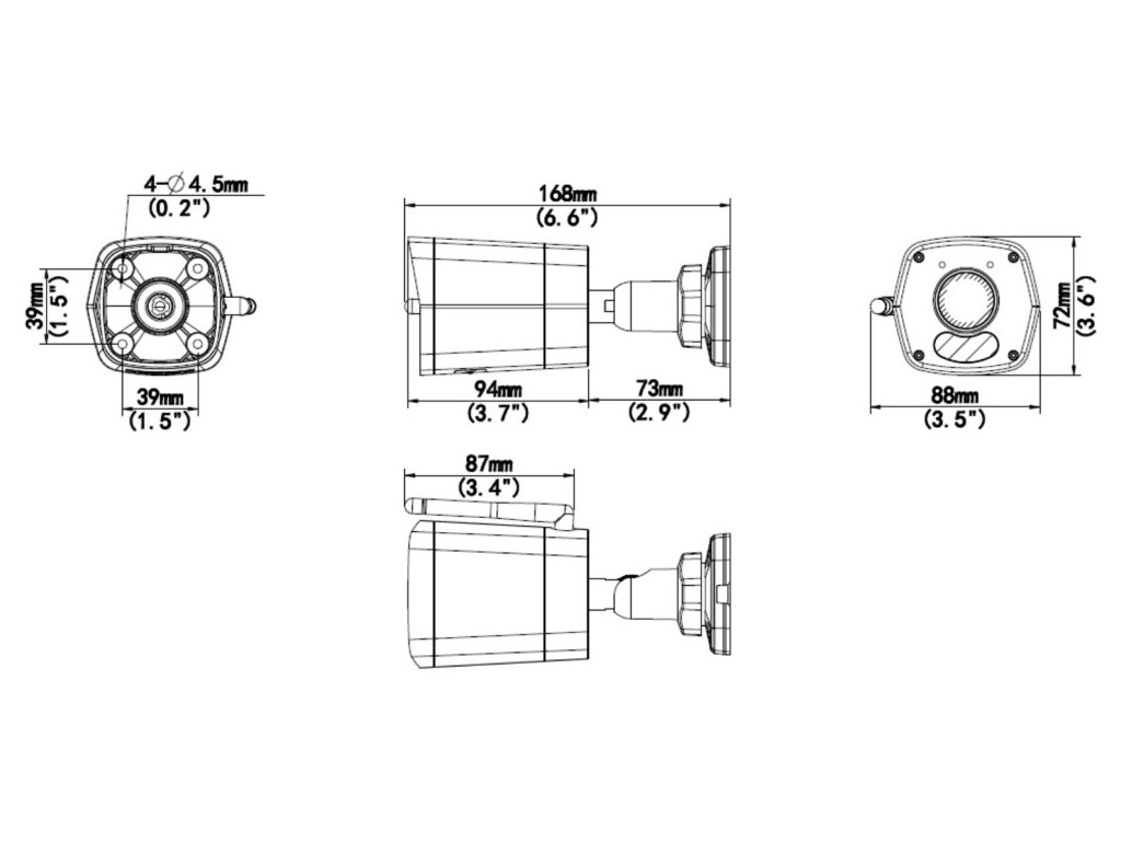 Uniarch by Uniview UHO-B1R-M2F3 2-megapixlová IP kamera typu bullet ponúka 1/2,9" snímač CMOS s progresívnym skenovaním, rozlišením 1920 × 1080 pixelov, citlivosťou 0,01 lux (farba, F2,1, AGC) a podporou DWDR. osvetleniu až do vzdialenosti 30 m. Pripojenie je možné jednoducho realizovať káblovo prostredníctvom portu RJ-45 alebo bezdrôtovo cez Wi-Fi. vode a prachu (IP67) IR technológia s dosahom až 30 m Integrovaný mikrofón Digitálna redukcia šumu 3D DNR Bezdrôtové pripojenie cez Wi-Fi Podpora microSD až do 128 GB ONVIF (S/T profily), podpora API, SDK 1/2,9" CMOS, progresívne snímanie Den/noc: áno Integrovaný IR osvetlovač: áno, do 30 m Objektív: f = 2,8 mm, pevný, horizontálny zorný uhol 101,1 °, vertikálny 55 °, uhlopriečka 111 ° 0 0 0 0 Rozhranie: Wi-Fi, 1× RJ-45 Slot na pamäťovú kartu: áno, microSD, max. 128 GB Rozmery: 168 × 88 × 72 mm Hmotnosť: 280 g Napájanie: DC 12 V (adaptér je súčasťou dodávky), max. spotreba energie 3,6 WDodatočné parametre