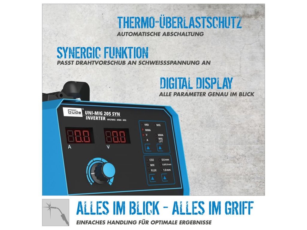 Univerzálny invertorový zvárací stroj Güde UNI-MIG 205 SYN (20083)