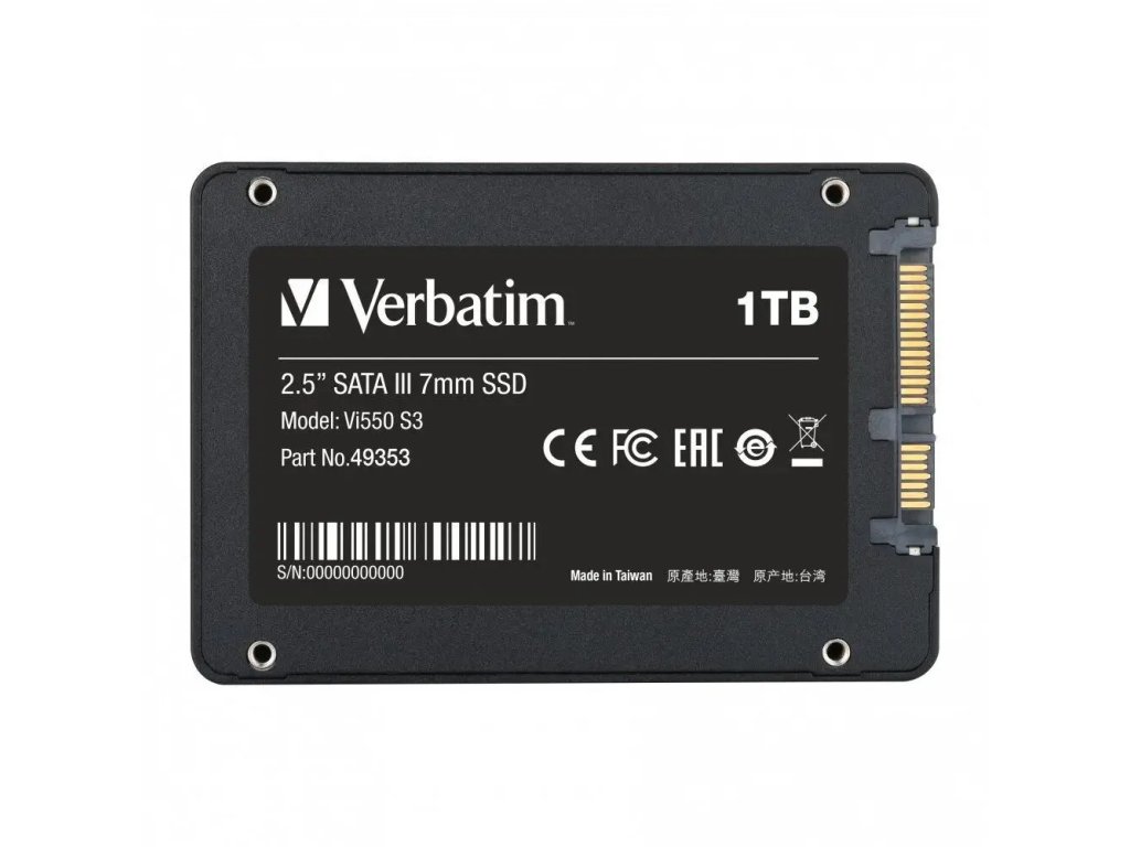 SSD disky Verbatim 2,5'' SATA III 7 mm môžu oživiť výkon vášho systému. Vďaka najnovšej technológii 3D NAND ponúkajú dokonalý spôsob upgradu z pevného disku alebo staršieho SSD. Disky Vi550 sú vybavené vynikajúcim radičom, ktorý zvyšuje spoľahlivosť, má vyššiu kapacitu a vyššie rýchlosti čítania a zápisu. Prodĺžte životnosť svojho počítača alebo notebooku Vdýchnite nový život staršiemu systému výmenou unaveného pevného disku alebo zastaraného disku SSD 2D NAND za disk SSD Vi550 S3. Disky Vi550 ponúkajú rýchlosť čítania až 550 MB/s, čo je až 20-krát viac ako štandardný pevný disk. Odporúča sa pre profesionálne inštalácie. Zvýšenie výkonu Vysokorýchlostné čipy 3D NAND flash v kombinácii s najnovšou generáciou radiča skrátia čas odozvy vášho systému. Výsledkom je vyššia produktivita pre vás – od rýchlejšieho spustenia, vypnutia a načítania až po plynulý multitasking. Odolnosť a výdrž Disky SSD Verbatim neobsahujú žiadne citlivé pohyblivé časti, takže na rozdiel od pevných diskov sú odolné voči nárazom a vibraciám. Chladenie a účinnosť Disky SSD Verbatim sú tichšie a generujú menej tepla ako pevné disky. Váš notebook tak vydrží dlhšie na jedno nabitie. Interný 2,5'' SATA III 7 mm SSD Vysoká spoľahlivosť vďaka vynikajúcemu radiču pamäte flash Klientsky disk SSD na modernizáciu počítačov a notebookov Rýchlosť čítania až 550 MB/s Zvýšte výkon počítača a spúšťajte aplikácie rýchlejšie rozhranie: SATA Revision 3.2. Rozhrania SATA 1,5 Gb/s, 3 Gb/sa 6 Gb/s Prevádzková teplota: 0 °C až 70 °C Neprevádzková teplota: -40 °C až 85 °C Vlhkosť: relatívna vlhkosť 90 % až 40 °C (prevádzková) Náraz: 1500 G, trvanie Frekvencia 20 až 80 Hz / posun 1,52 mm. frekvencia 80 až 2000 Hz / zrýchlenie 20 G, orientácia 60 minút osí X, Y, Z Rozmery: 7 mm × 69,9 mm × 100,5 mm Hmotnosť: 45 g Rýchlosť prenosu údajov: Rýchlosť čítania: 1 TB: až 520 MB/s MB/s Spotreba energie: Spotreba energie počas aktívneho čítania: 1TB: 1690mW Spotreba energie počas aktívneho zápisu: 1TB: 2475mW Spotreba energie pri nečinnosti: 1TB: 385 mW Určené na použitie v aplikáciách klientskych PC, nie je vhodné pre serverové prostredie. Systémové požiadavky Rozhranie 2,5'' SATA IIIDodatočné parametre