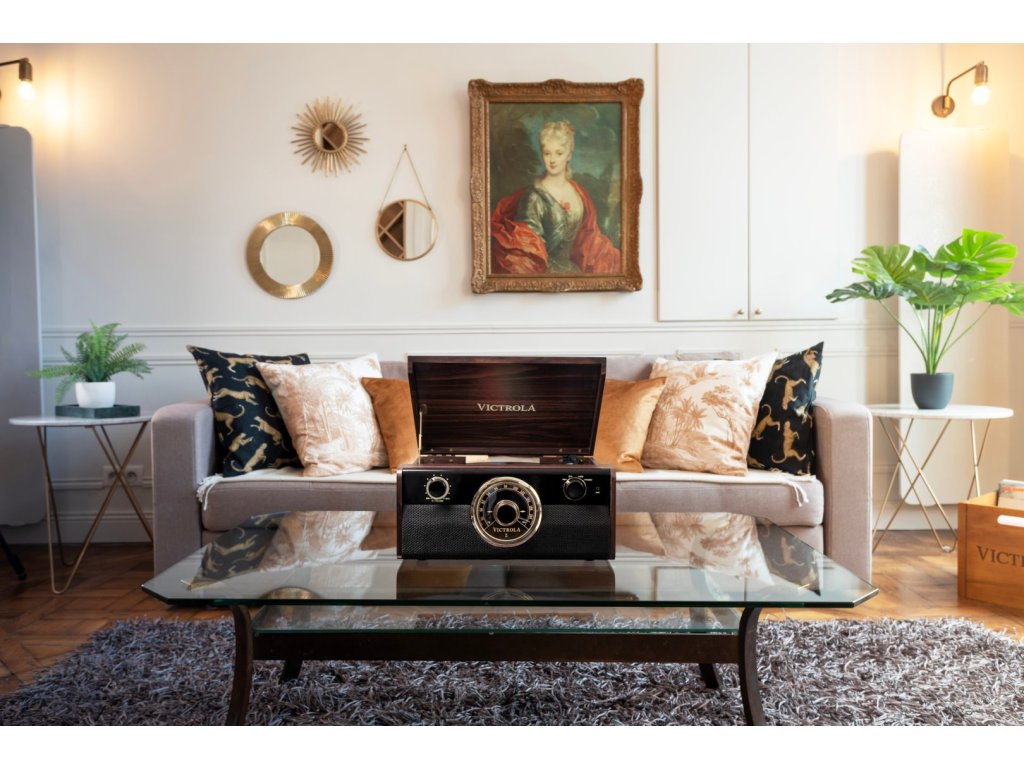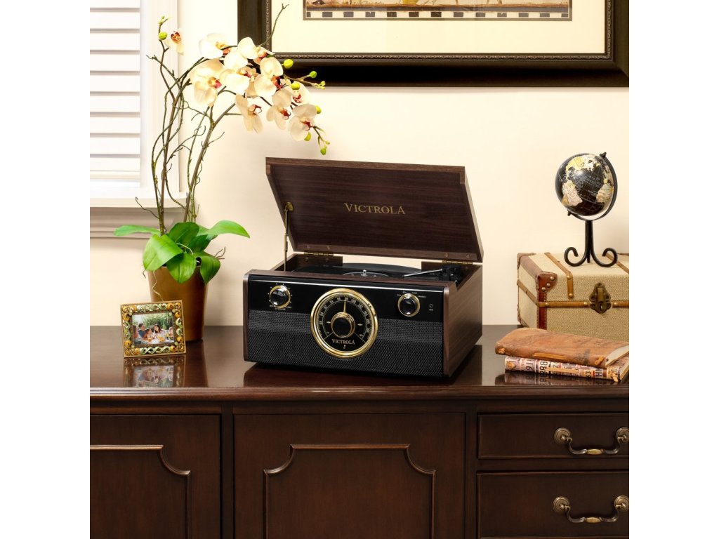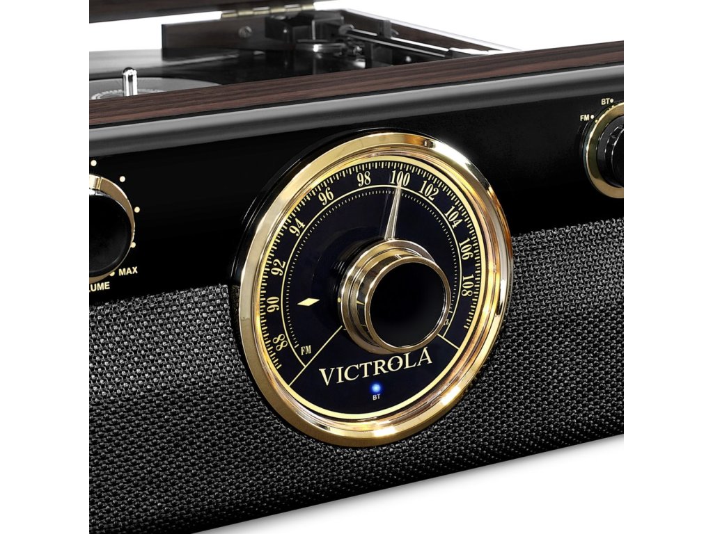 Gramofón Victrola VTA-240B kombinuje všetky moderné technológie s luxusným retro designom. Streamujte hudbu alebo prehrávajte svoje obľúbené vinylové platne či rozhlasové stanice. Pomocou zabudovaného prijímača Bluetooth môžete bezdrôtovo pripojiť svoje mobilné zariadenie s dosahom až 10 metrov. Gramofón obsahuje aj FM rádio s krásnym retro analógovým tunerom s LED podsvietením. Na prehrávanie hudby zo zariadení bez podpory Bluetooth použite 3,5 mm konektor. - Retro gramofón - 3 rýchlosti 33 1/3, 45 a 78 otáčok za minútu - FM rádio s analógovým tunerom - Bezdrôtové pripojenie cez Bluetooth - Vstup Aux-in, výstup RCA - Zabudované reproduktoryDodatočné parametre