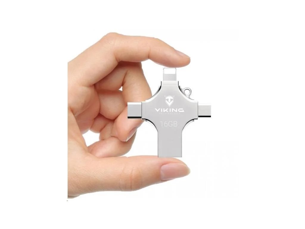 Viking USB Flash disk 3.0 4 v 1 s Lightning/Micro USB/USB/USB-C, 16 GB, strieborný