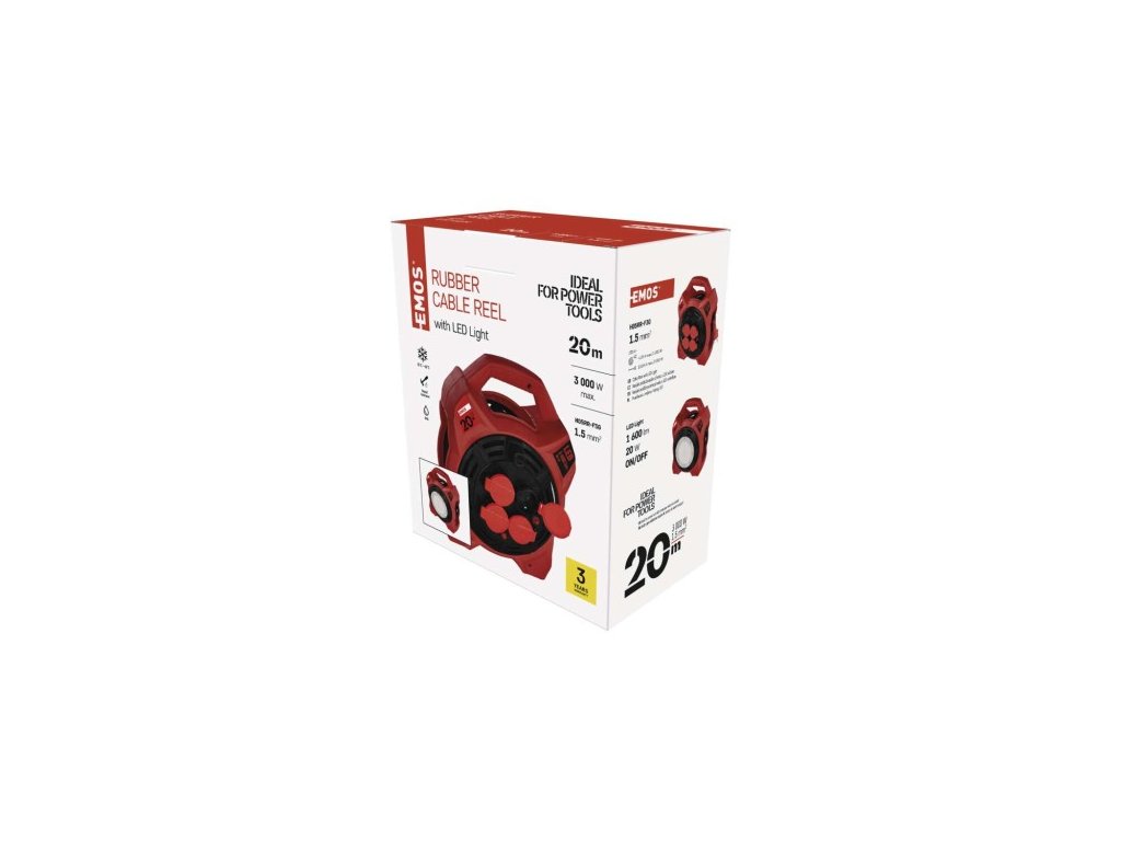 Vonkajší predlžovací kábel na bubne 20 m / 4 ks. / guma / 230 V / 1,5 mm2 s LED reflektorom