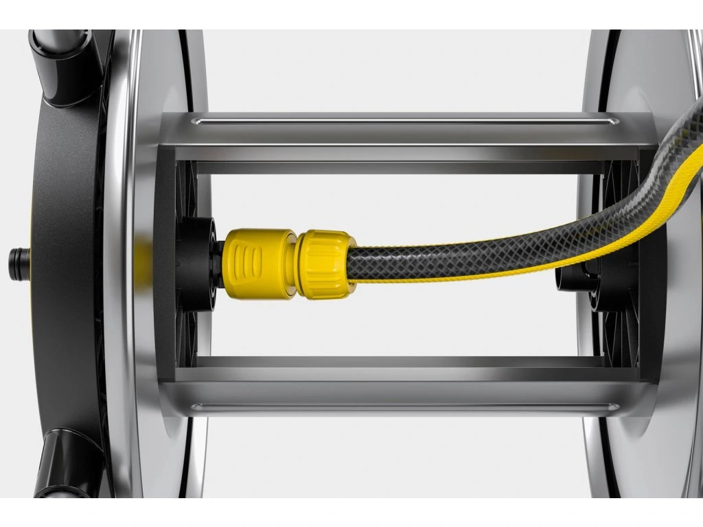Odolný kovový navijak: konštrukcia z vysokokvalitného kovu zaručuje výnimočnú robustnosť a odolnosť aj pri maximálnom zaťažení hadice.Robustný mechanizmus zabezpečuje rovnomerné a čisté navíjanie hadice vrstvu po vrstve bez potreby ručného vedenia.