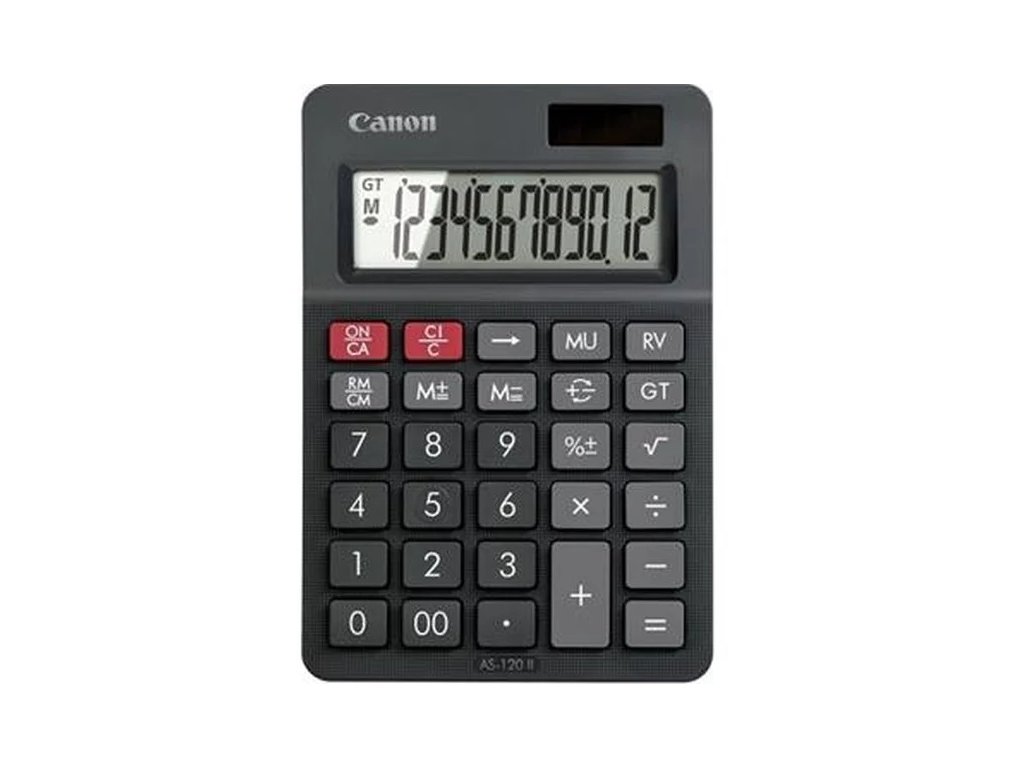 Miniatúrna stolová kalkulačka s 12-miestnym displejom Profesionálne telo s oblúkovým tvarom Vrchná a spodná časť puzdra sú vyrobené z recyklovaného materiálu Canon Výpočty prirážky (MU), návratnej hodnoty (RV) a celkovej sumy (GT) Duálne napájanie (solárne a 1x batéria LR44) VeľkýDodatočné parametre