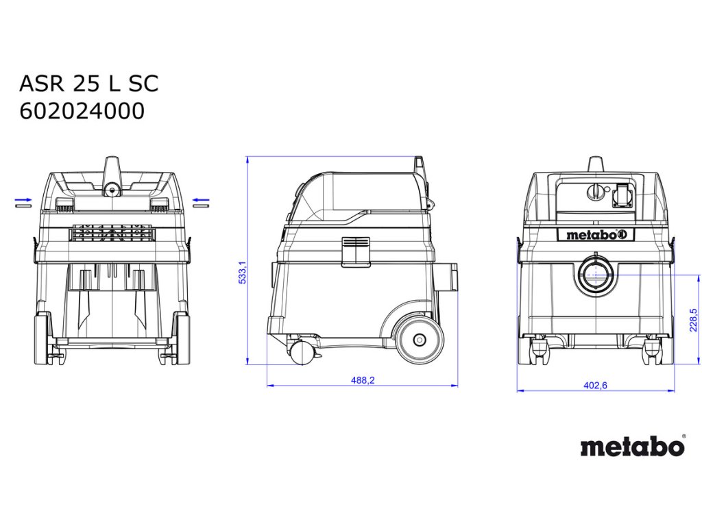 Vysávač na suché a mokré vysávanie - na komerčné použitie Ideálny na mobilné použitie vďaka svojej nízkej hmotnosti a kompaktnému dizajnu Na vysávanie elektrického náradia a na čistenie stavenísk, dielní atď. Zásuvka na prístroje pre elektrické náradie na využitie automatického zapnutia/vypnutia vysávača SelfClean: poloautomatické čistenie prania triedu L Automatické vypnutie počas mokrého vysávania po dosiahnutí maximálnej výšky naplnenia Automatický časovač na úplné vyprázdnenie sacej hadice Antistatické základné vybavenie zabraňuje statickému nabíjaniu pri použití vhodného príslušenstva Vysúvateľný kábel Praktický zásobník na príslušenstvo a odkladací priestor Systém na uskladnenie a prepravu: Pripojenie systému MetaLoc polyesterové filtračné kazety s veľkou filtračnou plochou pre konštantný vysoký sací výkon Charakteristické parametre Objemový prietok max. 4380 l/min Podtlak270 hPa (mbar) Plocha filtra8600 cm2 Príkon max.1400 W Objem nádrže25 l Sacia hadica O35 mm Dĺžka hadice hluku Hladina akustického tlaku72 dB(A) Dodávané príslušenstvo Sacia hadica (O 35 mm / 3,2 m) Dištančná rukoväť 2 plastové sacie trubice 2 polyesterové filtračné kazety (trieda M) Filtračná kapsa z netkanej textílie štrbinová tryska UniverzálnaDodatočné parametre