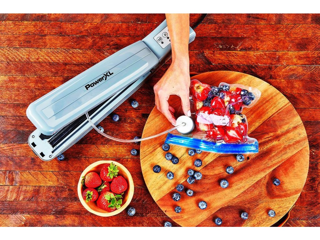PowerXL Duo NutriSealer je prenosná vákuovačka, výkonná inovacia na udržanie čerstvosti a plnosti potravín! Všestranná ručná vákuová zváračka 6 v 1 vrátane rozsiahleho príslušenstva na vákuovanie, vákuové uzatváranie a opätovné uzatváranie, krájanie a uzatváranie porcií. Vákuujte a zatavujte všetky potraviny podľa svojich predstáv a vychutnajte si bezkonkurenčnú čerstvosť a plnú chuť kedykoľvek! Vákuujte namiesto vyhadzovania Vaše potraviny vydržia až 5× dlhšie1 Vákuujte syr Vákuujte maso Vákuujte potraviny, aby zostali dlhšie čerstvé Vákuujte a ušetrite peniaze Dvojité vákuovanie Integrovaný nôž Šetrite čas a peniaze Nakupujte potraviny lacnejšie vo veľkom a potom ich sami zmrazujte plne automatické programy Utesnite aj tekutiny. Jednoducho upnite kapsu, zdvihnite vakuovú zváračku a stlačením tlačidla zatavte! Jednoduché predbežné zváranie. Pripravte si chutné jedlá plné vitamínov a chutí a uskladnite ich vo vákuovom balení Dvojité zváranie premení jednu kapsu na niekoľko malých vrecúšok - bez ďalších nákladov! Vákuujte čerstvé ovocie a zeleninu v jednom z dvoch vákuovo uzatvárateľných vreciek s ventilom Obsah balenia: PowerXL Duo NutriSealer Vákuová rolovacia tesniaca fólia 2 kusy po 3 m Viacúčelové príslušenstvo s hadicouDodatočné parametre