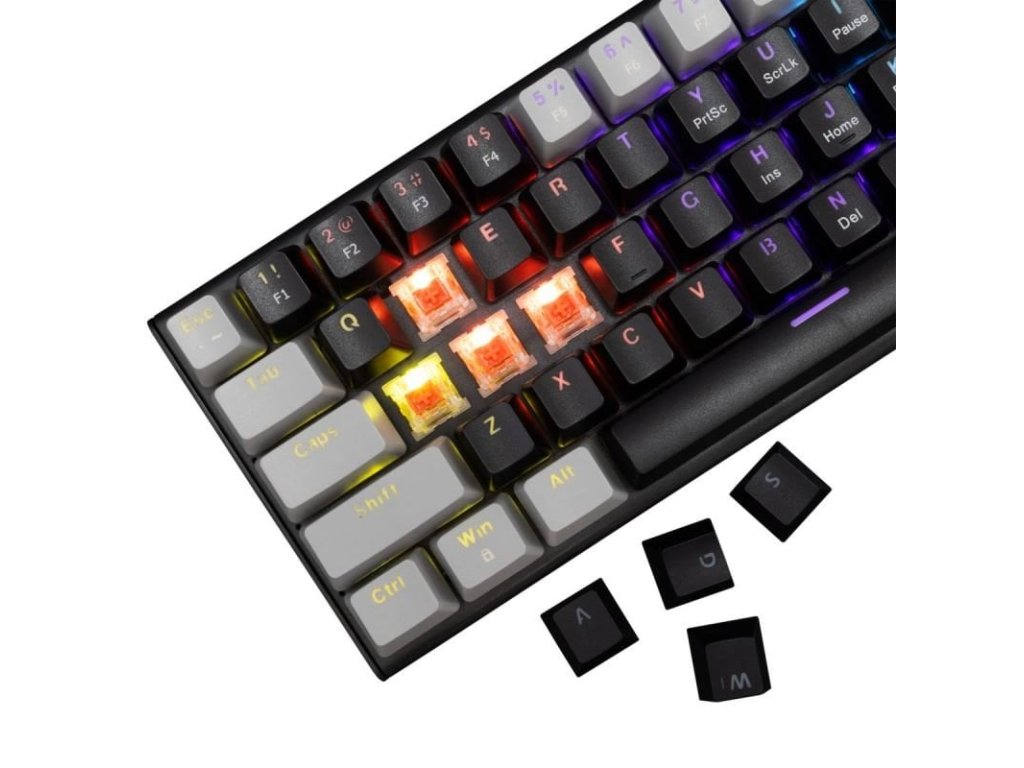 Upgradujte své nastavení pomocí herní klávesnice White Shark WAKIZASHI 2, která nyní nabízí plnou podporu anti-ghosting pro bezchybné stisky kláves. Tato kompaktní klávesnice s 63 klávesami si zachovává oblíbené funkce originálu, včetně mechanických čevených spínačů a 17 duhových světelných efektů. WAKIZASHI 2 s odnímatelným kabelem typu C a odolnou plastovou konstrukcí z ABS kombinuje spolehlivost a vylepšenou odezvu pro seriózní hráče. Full anti-ghosting kláves Červené spínače LED duhové osvětlení Kompaktní 63/64 kláves 17 LED režimů s nastavitelným jasem světla a rychlostí chodu Životnost více než 50 milionů stisknutí TECHNICKÁ SPECIFIKACE Počet klíčů: 63/64 Typ spínače: Mechanický - Červený Anti-Ghosting: Úplný Anti-Ghosting Rozhraní: Typ C - USB 2.0 (odnímatelné) Délka kabelu (m): 1,5 Dostupné rozvržení: US Rozložení kláves: Kompaktní Životnost: Více než 50 M lisů Osvětlení: Rainbow Effect / 17 různých efektů Materiál: ABS plast Přídavné zvedací nohy: Ano Pletený kabel: Ne ROZMĚRY A HMOTNOST Rozměry (mm): 292 mm × 105 mm × 35 mm Hmotnost (g): 430 ROZMĚRY A HMOTNOST BALENÍ Rozměry (mm): 345 mm × 113 mm × 45 mm Hmotnost (g): 500Dodatočné parametre