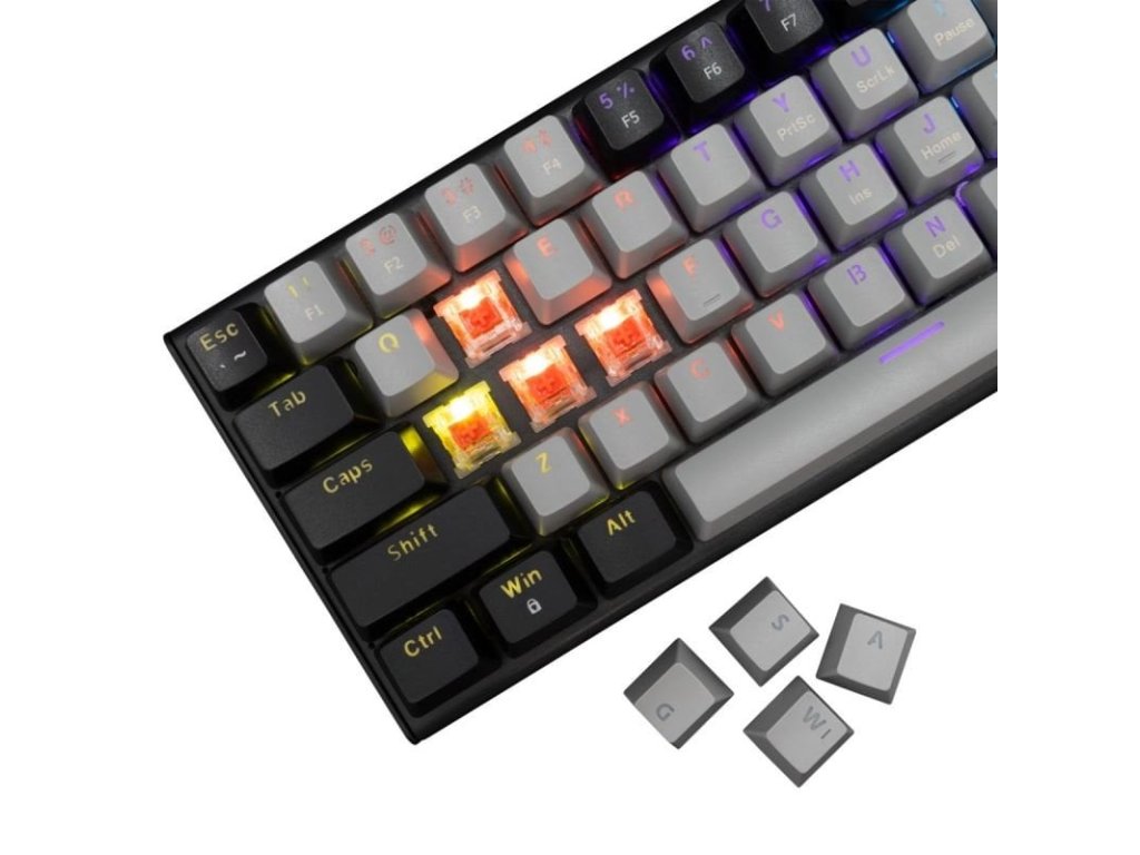 Upgradujte své nastavení pomocí herní klávesnice White Shark WAKIZASHI 2, která nyní nabízí plnou podporu anti-ghosting pro bezchybné stisky kláves. Tato kompaktní klávesnice s 63 klávesami si zachovává oblíbené funkce originálu, včetně mechanických červených spínačů a 17 duhových světelných efektů. WAKIZASHI 2 s odnímatelným kabelem typu C a odolnou plastovou konstrukcí z ABS kombinuje spolehlivost a vylepšenou odezvu pro seriózní hráče. Full anti-ghosting kláves Červené spínače LED duhové osvětlení Kompaktní 63/64 kláves 17 LED režimů s nastavitelným jasem světla a rychlostí chodu Životnost více než 50 milionů stisknutí TECHNICKÁ SPECIFIKACE Počet klíčů: 63/64 Typ spínače: Mechanický - Červený Anti-Ghosting: Úplný Anti-Ghosting Rozhraní: Typ C - USB 2.0 (odnímatelné) Délka kabelu (m): 1,5 Dostupné rozvržení: US Rozložení kláves: Kompaktní Životnost: Více než 50 M lisů Osvětlení: Rainbow Effect / 17 různých efektů Materiál: ABS plast Přídavné zvedací nohy: Ano Pletený kabel: Ne ROZMĚRY A HMOTNOST Rozměry (mm): 292 mm × 105 mm × 35 mm Hmotnost (g): 430 ROZMĚRY A HMOTNOST BALENÍ Rozměry (mm): 345 mm × 113 mm × 45 mm Hmotnost (g): 500Dodatočné parametre