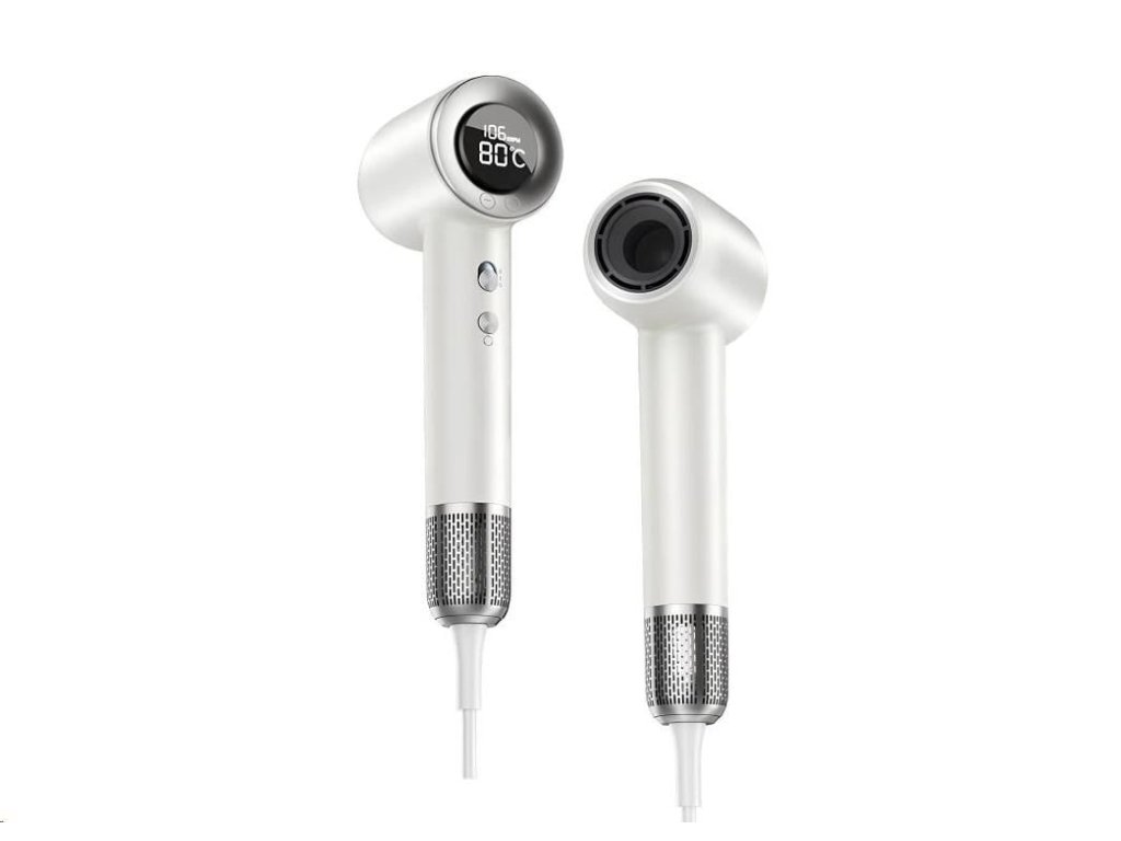 Fén na vlasy WG Elegance Air Pro - Vaše vlasy si zaslouží víc než jen horký vzduch. Profesionální vysoušeč vlasů Elegance Air Pro přináší špičkový výkon, moderní design a inteligentní péči o vaše vlasy. Ideální pro domácí použití i do salónů. Hlavní výhody: Digitální displej – jasné a přehledné zobrazení teploty a režimu foukání 13 nastavitelných úrovní teploty (35 °C – 90 °C) – přesné nastavení po 5 °C – od chladného vzduchu až po velmi horký, pro maximální přizpůsobení typu vlasů 3 režimy proudění vzduchu – vysoká rychlost, nízká rychlost, vypnuto Magnetické nástavce v balení: Hladký nástavec - zjemňuje proud vzduchu, vyhlazuje vlasy a omezuje jejich elektrizování, ideální pro každodenní styling, otočná o 360° pro flexibilitu při použití. Stylingový koncentrátor - usnadňuje tvarování účesu a umožňuje otáčení o 360° pro flexibilitu při použití Difuzér - rovnoměrně rozptyluje vzduch pro přirozené sušení kudrnatých a vlnitých vlasů, pomáhá udržet objem a definici kadeří, otočný o 360° pro flexibilitu při používání 2× obousměrné Airwrap nástavce - dvojice nástavců pro natáčení vlasů ve dvou směrech, využívá proud vzduchu pro jemné tvarování bez extrémního tepla, vhodné pro vytváření vln a kadeří Negativní iontová technologie – pomáhá zamezit krepatění vlasů, zvyšuje jejich lesk a zlepšuje jejich celkovou kondici NTC technologie regulace teploty – chrání vlasy před přehřátím a zajišťuje rovnoměrné vysoušení Lehký a přenosný design – kompaktní, ergonomický, ideální na doma i na cesty s délkou kabelu 2m Nízká hlučnost – vysokorychlostní bezkartáčový motor s redukcí hluku (max. 75 dB) pro rychlé a efektivní sušení vlasů Technické parametry: Příkon: 1600 W Napětí: 220V Rychlost ventilátoru: 110 000 ot./min Rychlost proudění vzduchu: až 30 m/s Ionizace: až 1.3 miliarda negativních iontů/s Hlučnost: max. 75 dB, Frekvence: 50/60 Hz Hmotnost: 355 g (bez kabelu) Délka kabelu: 2m Materiál: PC, nylon Rozměry: 254 × 95 × 70.5 mmDodatočné parametre