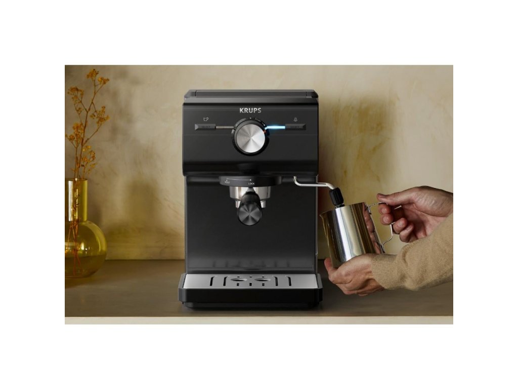 Pákové espresso Krups XP381810 Espresso s dokonalou cremou díky 15barovému tlaku čerpadla a bojleru, který zajišťuje konstantní teplotu vody pro vynikající extrakci Jeden šálek, dva šálky nebo mléčná pěna – nakloněný ruční výběr stroje na espresso směřující dopředu vám dává intuitivní ovládání na dosah ruky Elegantní estetický a černý povrch se skutečně moderním vzhledem – plus velké gumové nožičky pro stabilitu a chytré uložení vašich filtrů Bez námahy napěněné mléko pro krémové cappuccino a další díky parní trysce vestavěné v kávovaru na espresso Šálek po šálku bez doplňování díky praktické nádrži na vodu o objemu 2 l, s předním okénkem hladiny vody a odnímatelným designem pro snadnou manipulaci Snadné odstranění kávové sedliny bez nechtěné ztráty filtru v koši díky chytrému designu háčku na portafiltru Výběr mezi čerstvou nebo předem namletou kávou a výběr ze dvou filtrů obsažených v balení – jeden nebo dva šálky Správný šálek pro správný nápoj – důmyslný a přitom kompaktní ruční kávovar na espresso pojme jakýkoli šálek nebo hrnek na espresso, který si vyberete Součást balení: kávovar, dávkovací lžička s pěchovadlem, filtr na 1 šálek, filtr na 2 šálky, držák filtru" Rozměry (V x Š x H) 38,6 x 29,6 x 40 cm Hmotnost (g) 3200 Barva černáDodatočné parametre