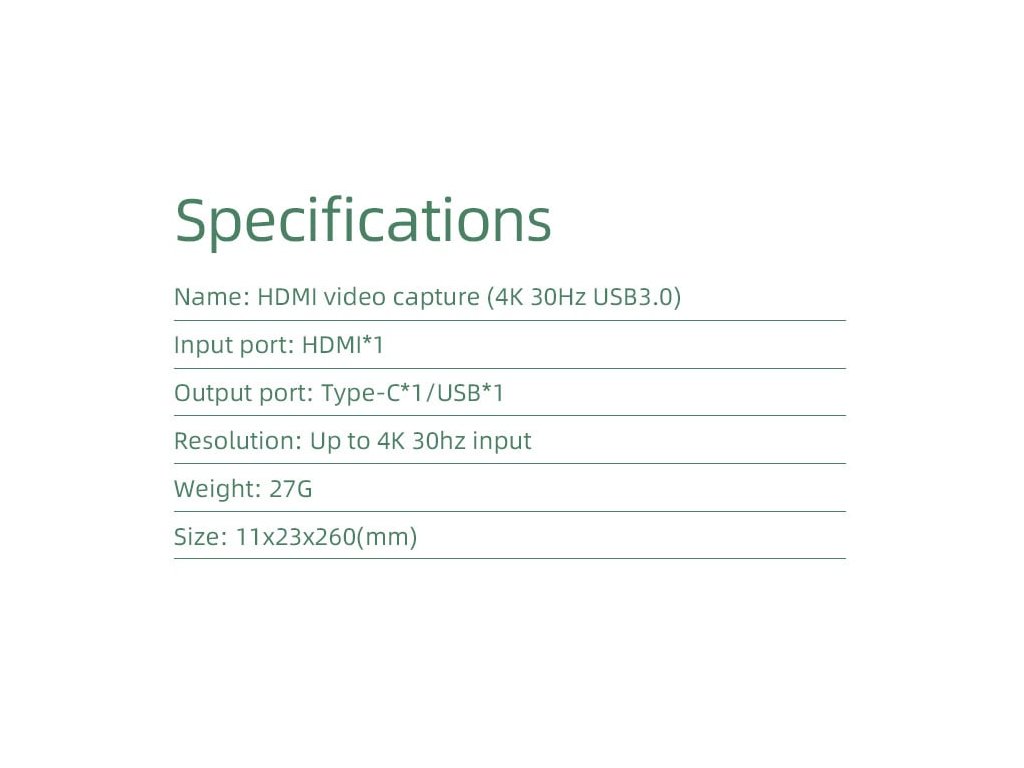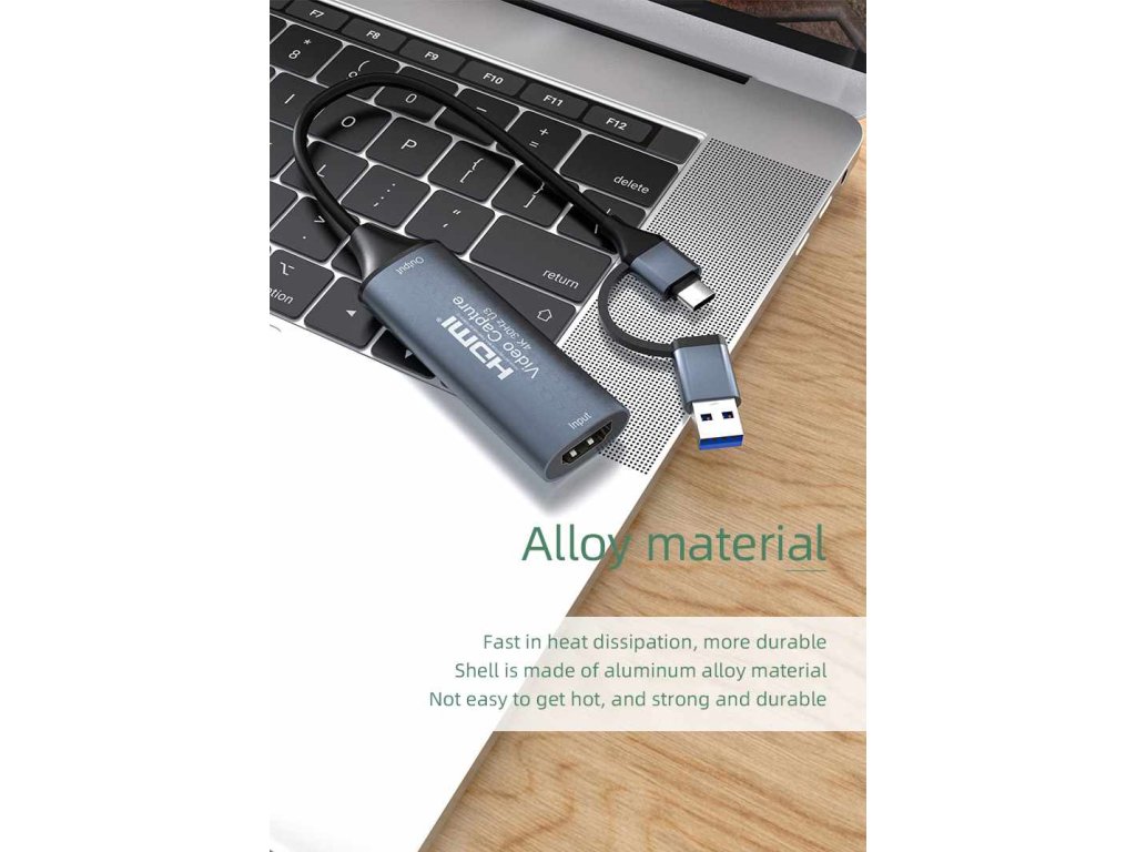 PremiumCord HDMI nahrávanie/grabber na nahrávanie video/audio signálu do počítača s konektorom USB3.0 a USB-C Podporuje nahrávanie a prenos vysokokvalitného zvuku alebo videa s vysokým rozlišením priamo do počítača. Je veľmi vhodný na nahrávanie videa a zvuku a živé vysílání. Užitočný pomocník pre tých, ktorí chcú prenášať signál HDMI do počítača prostredníctvom konektorov USB3.0 alebo USB-C vysokou rýchlosťou Nahrávanie videa dokáže zachytiť video aj zvuk obsiahnutý v HDMI - Záznam vo vysokom rozlišovaní 1920 × 1080 pri 60 Hz. - Nahrávajte video vo vysokom rozlišení priamo na pevný disk bez zpoždenia - Vstupný konektor videa: Konektor HDMI: samice - USB3.0 alebo USB Type-C samec - Podporuje hlboké farby 24/30/36bit - Podpora štandardného kábla HDMI AWG26: vstup až 15 metrov, (rozlíšenie nie 1080 bezproblémového zážitku môžete použiť zabudovaný aktuálne softvér. Keďže zariadenie je kompatibilné s väčšinou softwarových programov tretích strán, môže byť plug-and-play kompatibilné pre Windows, Ma OS X a Android. - podporuje väčšinu akvizičného softvéru, napríklad VLC, OBS, Amcap atď. - podpora systémov Windows, Android a Mac OS - v súlade so štandardom USB Video a UVC - vyhovuje štandardu USB Audio UAC - bez externého napájania, napájanie cez USB3.0 alebo USB-C - Capture umožňuje nahrávať video z fotoaparátu alebo videokamery priamo výstupom HDMI, ako sú zariadenia PS4, pre Wii U a Switch. - Podpora zvukového formátu L-PCM - Maximálny prevádzkový proud 0,4 A/5 VDC - Rozsah provozních teplot (-10 až +55 °C) - Rozmery (D x Š x V) 64x28x13 (mm) - Hmotnosť 27 gDodatočné parametre