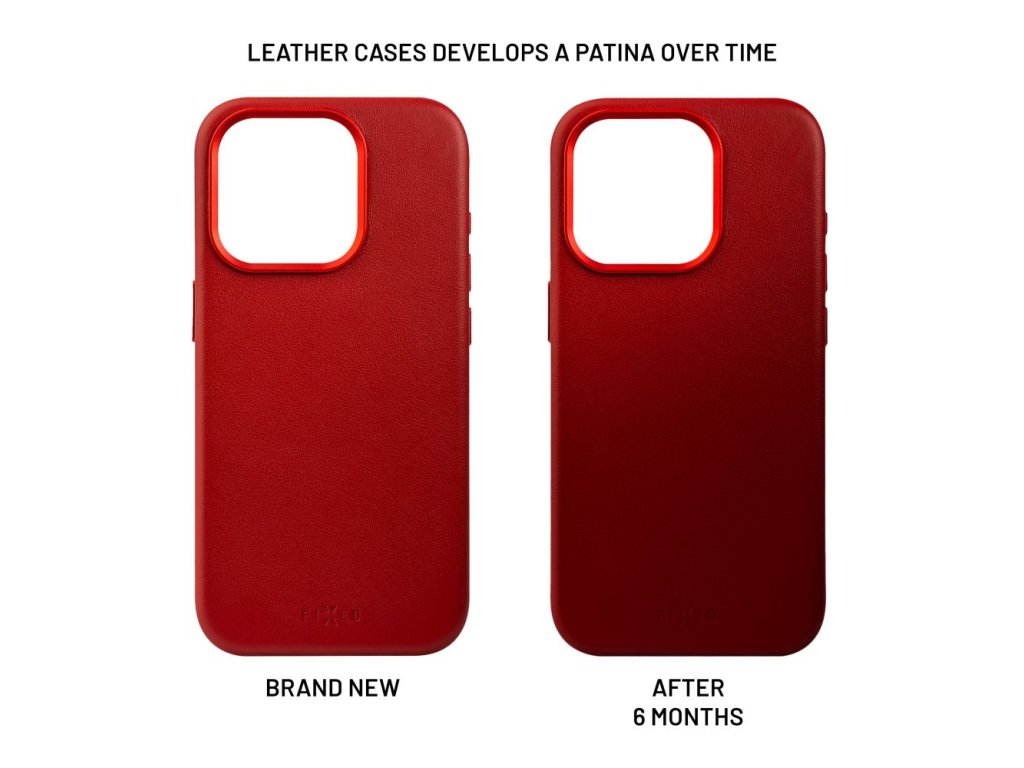 Zadný kožený kryt FIXED MagLeather s podporou MagSafe pre Apple iPhone 16 Plus, červený