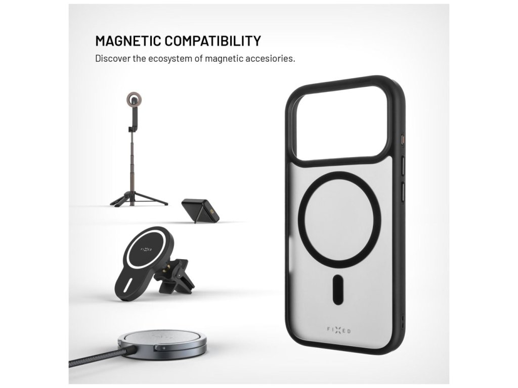 FIXED Tvrdený zadný kryt MagMisty kombinuje spolehlivú ochranu telefónu s elegantným dizajnom. Vďaka integrovaným magnetom MagSafe N52 sa kryt pevne a presne pripevní k nabíjačkám a príslušenstvu MagSafe, takže všetko zostane presne tam, kde má. Odolná zadná strana z polykarbonátu v kombinácii s pružnými bočnými stranami z TPU spolehlivo chráni telefón pred nárazmi a drobnými pádmi. Zvýšené okraje na prednej strane krytu chránia obrazovku, keď je telefón položený displejom dolov, zatiaľ čo mírne vyvýšené rohy na zadnej strane zabezpečujú, aby sa kryt priamo nedotýkal povrchu, čím účinne zabraňujú poškriabaniu zadnej strany a šošoviek fotoaparátu. Matný vzhľad krytu s dymovým efektom a precízne vyhotovené kovové kryty tlačidiel okamžite dodajú telefónu moderný štýl. Doprajte si kvalitnú ochranu a pohodlie pri každodennom používaní s krytom FIXED MagMisty. Vlastnosti: Kryt je vyrobený z odolného materiálu, ktorý je odolný proti poškodeniu: - Zadný tvrdený kryt - Integrované magnety N52 na stabilné pripevnenie príslušenstva MagSafe - Odolná polykarbonátová konštrukcia s bočnými stranami z TPU - 360 ° ochrana telefónu pred nárazmi, poškriabaním a nečistôt pred poškriabaním - Elegantný matný vzhľad s dymovým efektom - kovové kryty tlačidiel - Protismykový povrch príjemný na dotyk - Presné výrezy pre reproduktory, nabíjací konektor a fotoaparát - Možno používať s bezdrátovými nabíjačkami MagSafe a Qi2 - Kompatibilný s ochrannými brýľamiDodatočné parametre