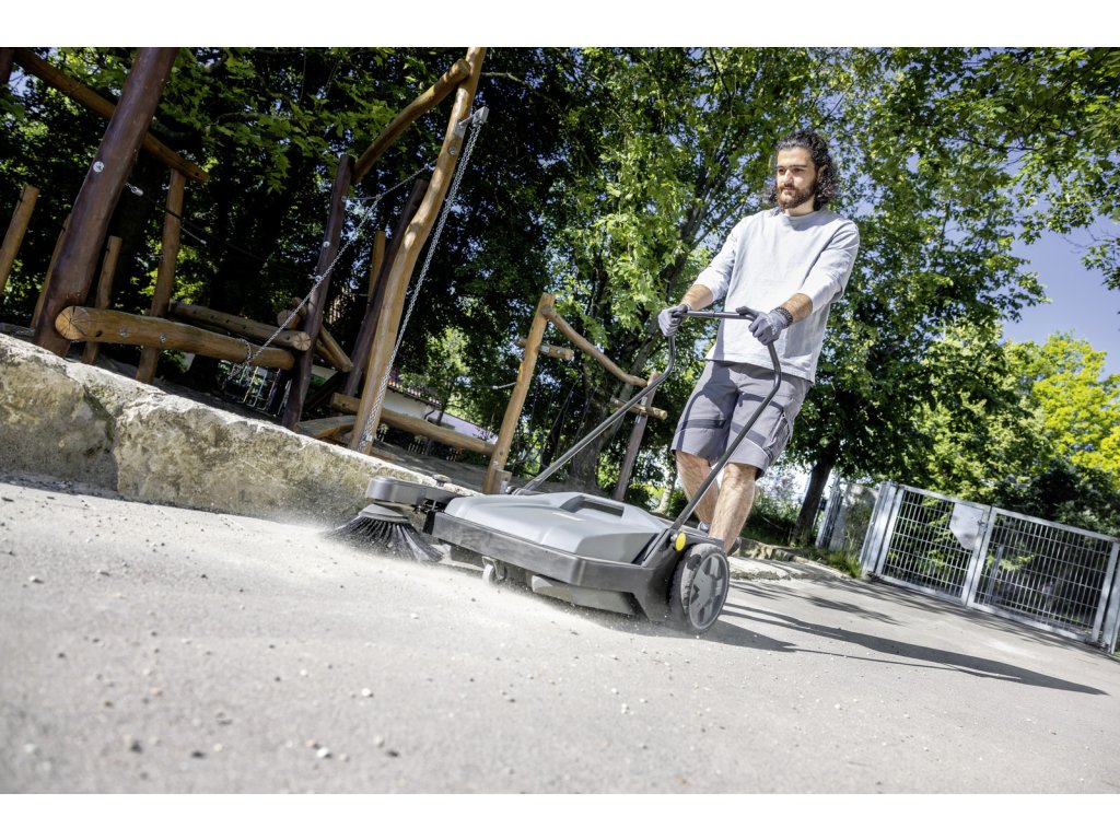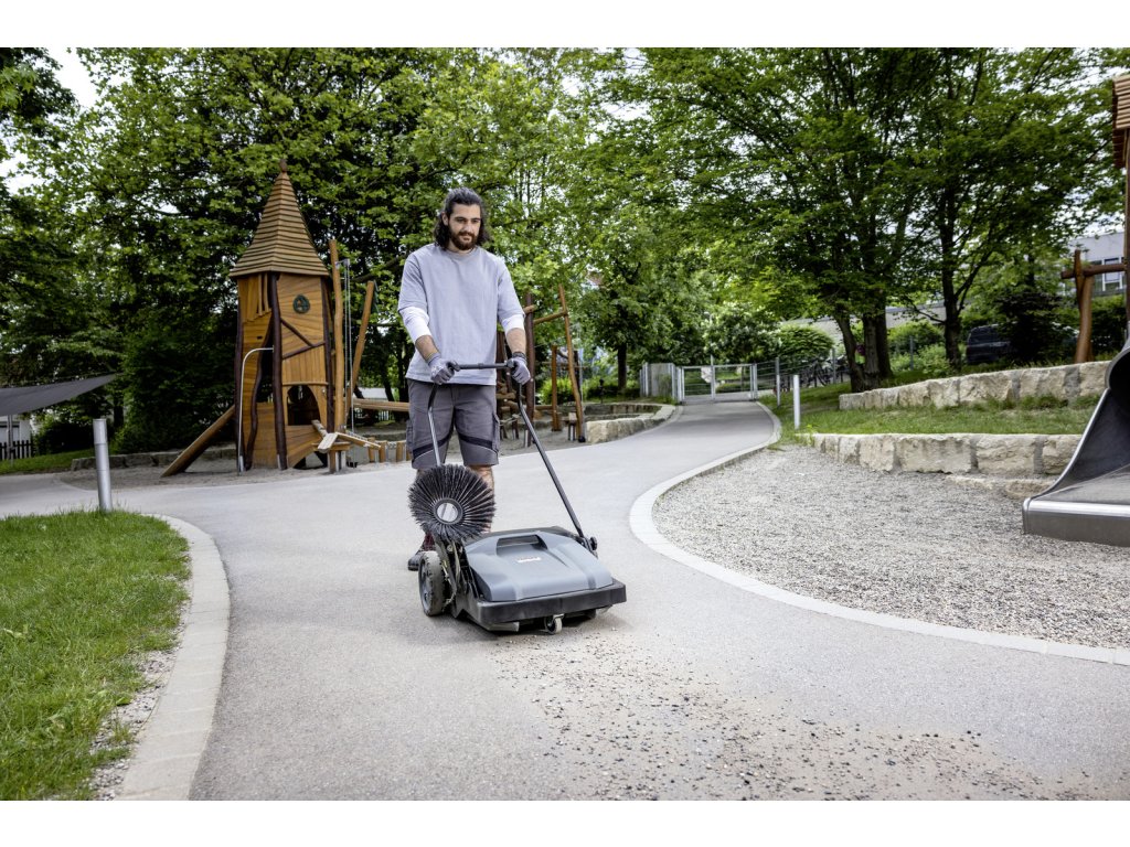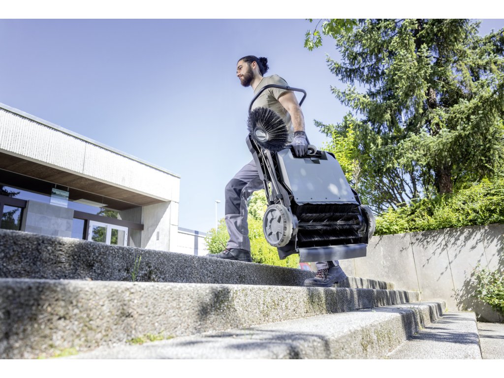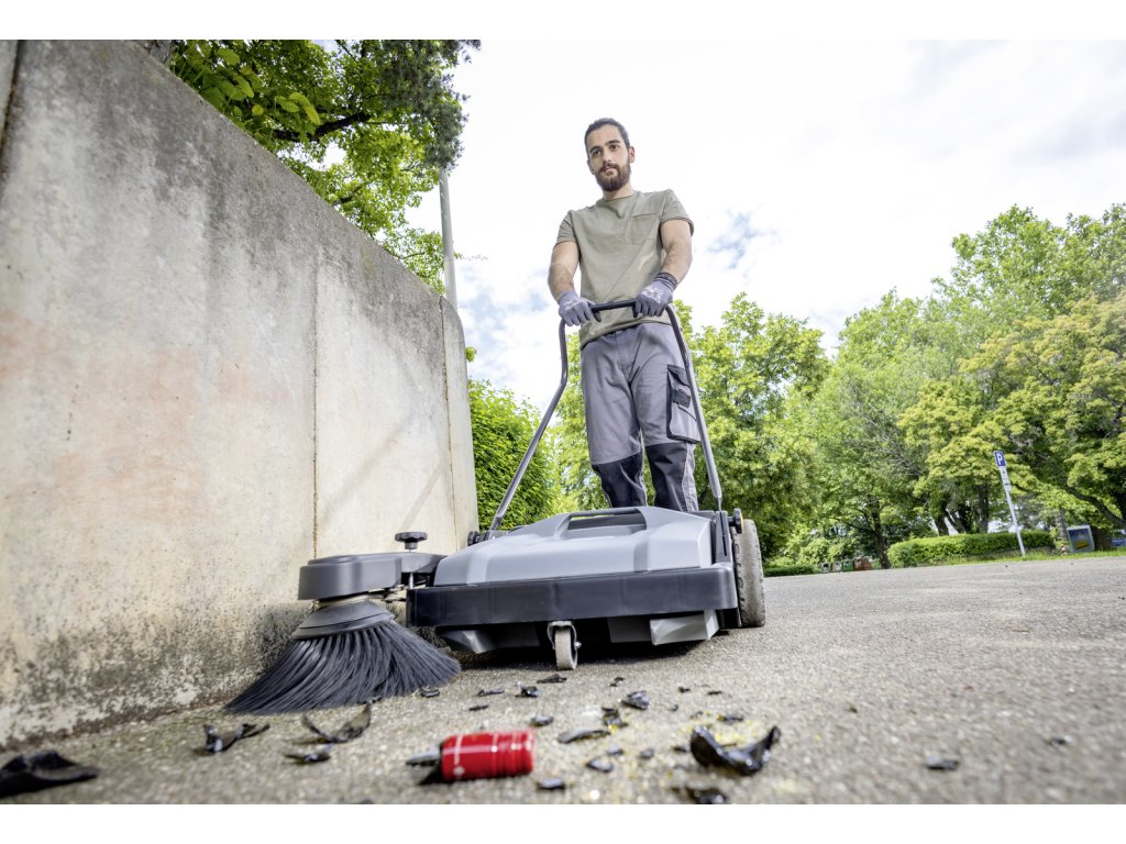 S kompaktným ručne vedeným zametacím strojom KM 70/15 C Classic je možné ľahko a pohodlne čistiť všetky vnútorné a vonkajšie priestory. Pri čistení ploch s rozlohou 100 metrov štvorcových a viac je oveľa účinnejší ako metla. Vďaka nízkej hmotnosti a malému odporu kolies sa s ním ľahko manévruje a prepravuje. Zametací valec je poháňaný levým kolom, čo zabezpečuje spoľahlivý transport odpadu do zametacieho kontejnera. Bočný kartáč je určený na zametanie hran a rohov. Pri čistení otvorených plôch ju možno sklopiť, aby sa znížila nežiaduca tvorba prachu. Bočný kartáč možno nastaviť tak, aby sa predišlo ho opotrebovaniu. Pri výmene kartáča nie sú potrebné žiadne nástroje. Nádobu na odpad možno v okamihu vybrať a vyprázdniť. Predná časť nádoby je tvarovaná tak, aby sa v prípade potreby dala postaviť do svislej polohy. Skladacia rukoväť sa dá nastaviť podľa výšky obsluhy a dá sa úplne zložiť na plocho, aby sa KM 70/15 C Classic skladoval priestorovo úsporne.Dodatočné parametre