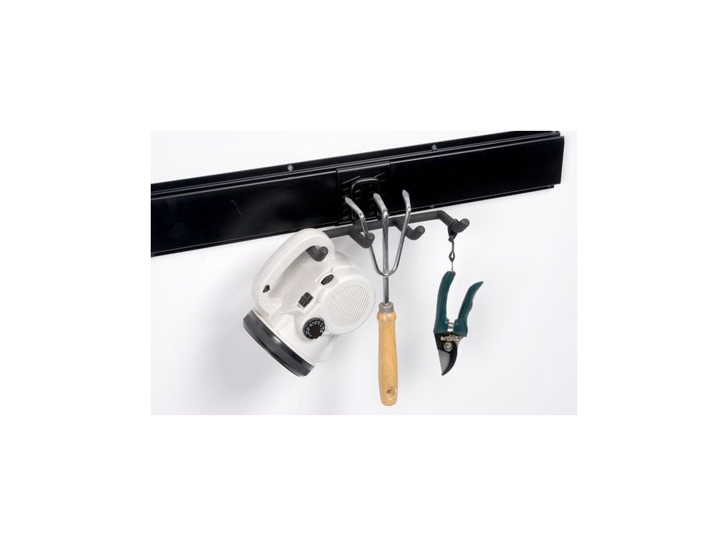 Univerzálny držiak na náradie G21 BlackHook sa používa na zavesenie športového náradia, záhradného náradia a iného náradia, ako sú maliarske valčeky, kladivá atď. Pomôže vám udržať poriadok v dielni alebo garáži a zároveň mať všetko po ruke. Držiak je súčasťou komplexného závesného systému G21. Závesný systém G21 využijete v garáži, dielni, pivnici, sklade a na ďalších miestach, kde potrebujete ušetriť miesto. Držiak na náradie sa ľahko upevňuje a umožňuje bezpečne zavesiť takmer akýkoľvek druh náradia. Je vybavený gumovou objímkou a visí na závesnej líšte s rozmermi 61 x 10 cm, ktorú možno spojiť spojovacou tyčou a ukončiť plastovou zátkou. Vhodné na zavesenie: Váľky na maľovanie Kladivé Tenisové rakety Mopy Lopaty A ďalšie potreby podľa vašej fantázie. systém závitov Všetko príslušenstvo potrebné na pripevnenie držiaka nájdete v našej ponuke pod kódmi: Závesná lišta - 8991795 Spojovacia lišta - 8991791 Plastová zátka - 8991794 Špecifikácia: Počet háčikov: 4 Dĺžka háčika: 9 cm Nosnosť: 3 cm Hmotnosť: 0,39 kg Vhodné na zavesenie malírskych valčekov a iných nástrojov Odolná kovová konštrukcia Neodnímateľný gumový ochranný povrchDodatočné parametre