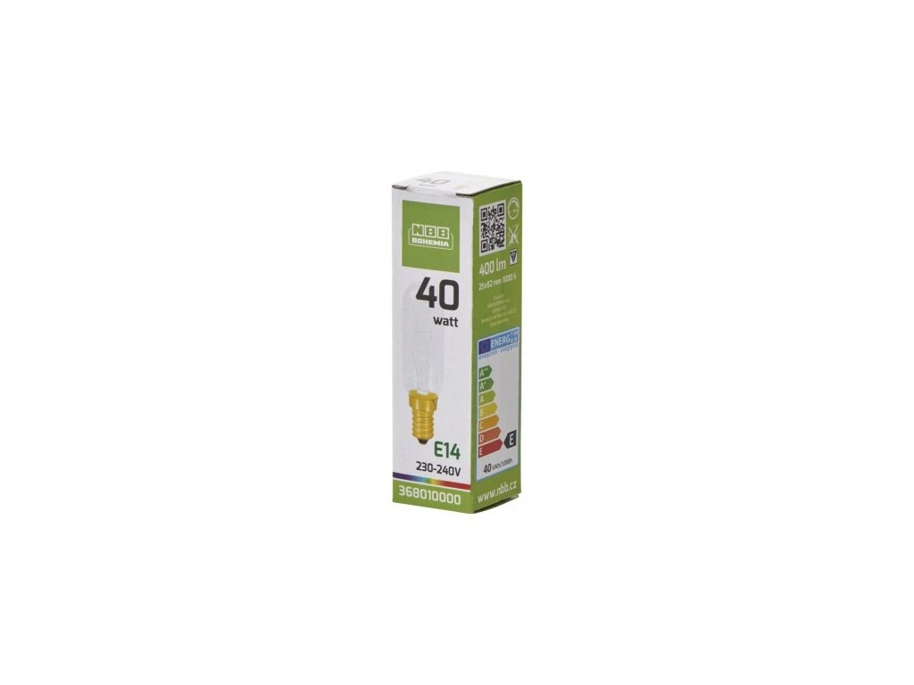 Výhody produktuTrubicové číre žiarovky pre kuchynské odsávače pár. Energetická trieda: nepoužije sa energetická trieda (od 1.9.2021): neuvedené napätie: 230 V patica (objímka žiarovky): E14 príkon: 40 W predajné balenie: 1 kus, krabica výrobok: žárovka do digestoru rozmery: 25 × 82 mm typ: žiarovka do digestoru záručná doba: 2 rokyDodatočné parametre